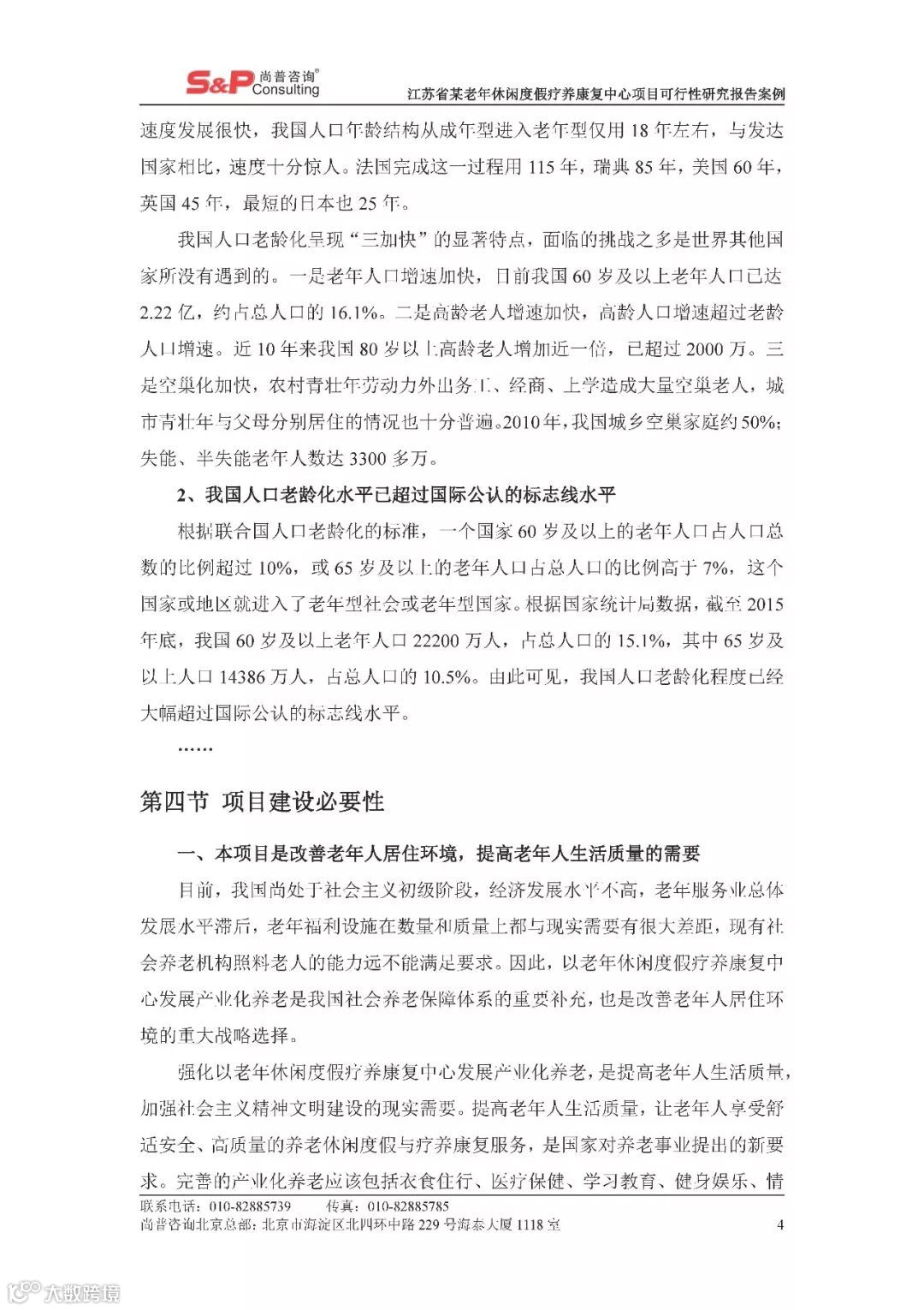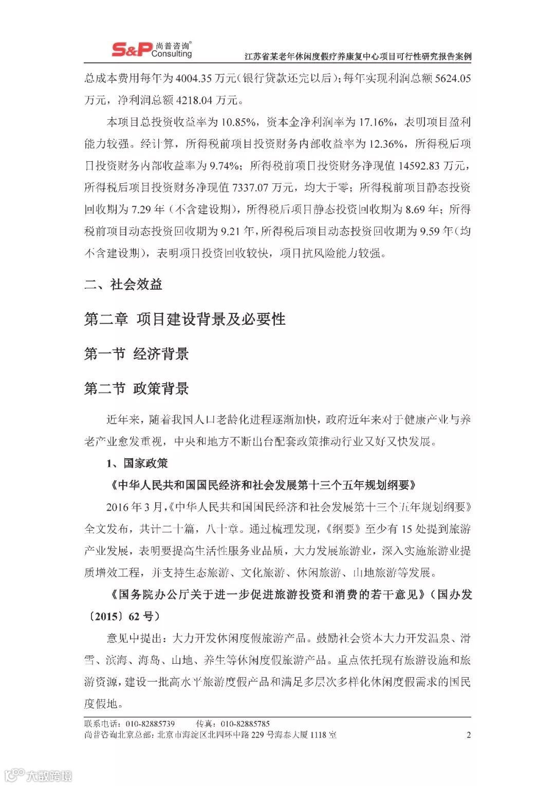 江苏省某老年休闲度假疗养康复中心项目可行性研究报告案例 尚普并购咨询