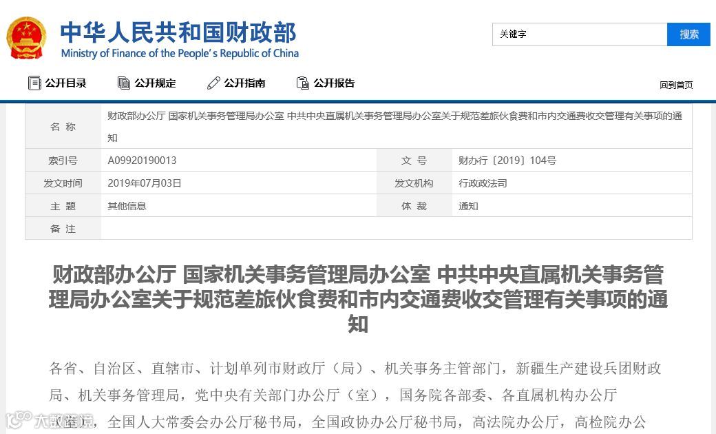 近日,国家财政部官网发布了关于规范差旅伙食费和市内交通费收交管理有关事项