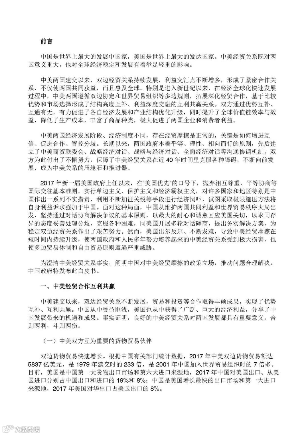 2018年中美经贸摩擦白皮书