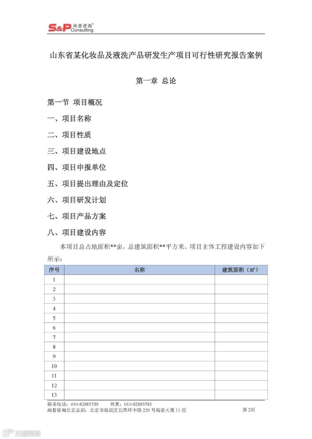 山东省某化妆品及液洗产品研发生产项目可研报告案例 尚普并购咨询