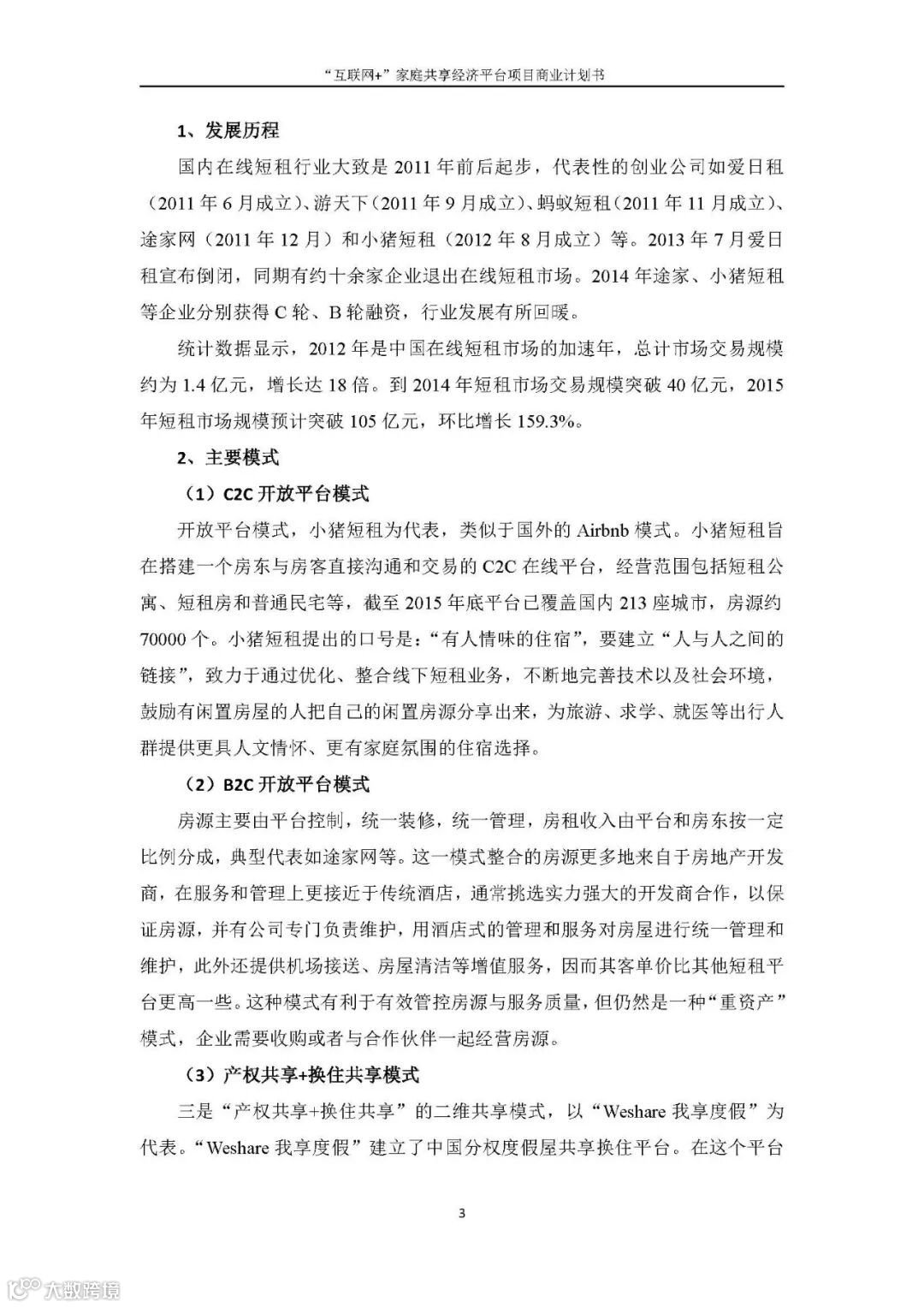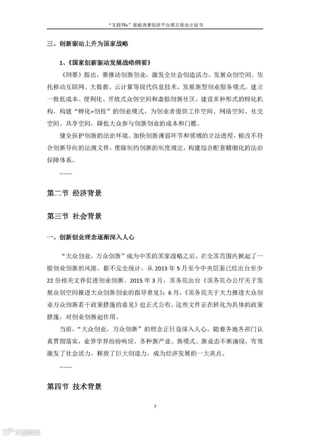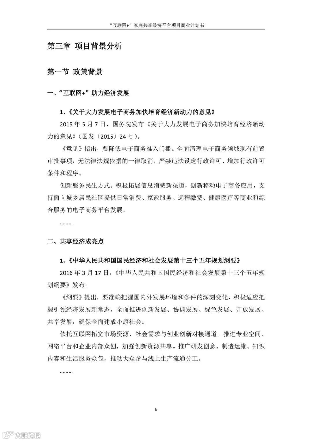 “互联网+”家庭共享经济平台项目商业计划书 尚普并购咨询
