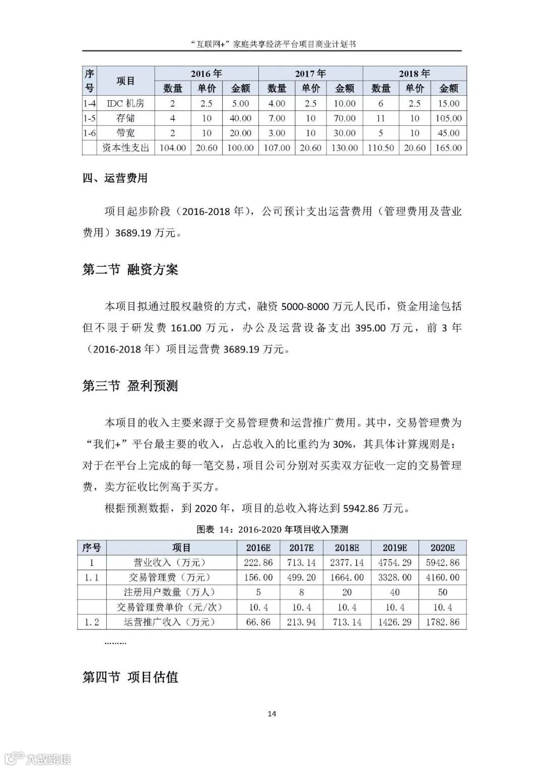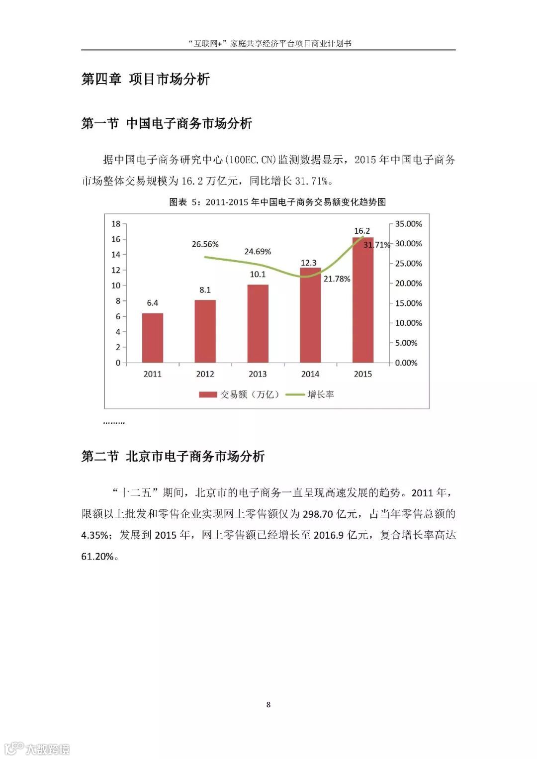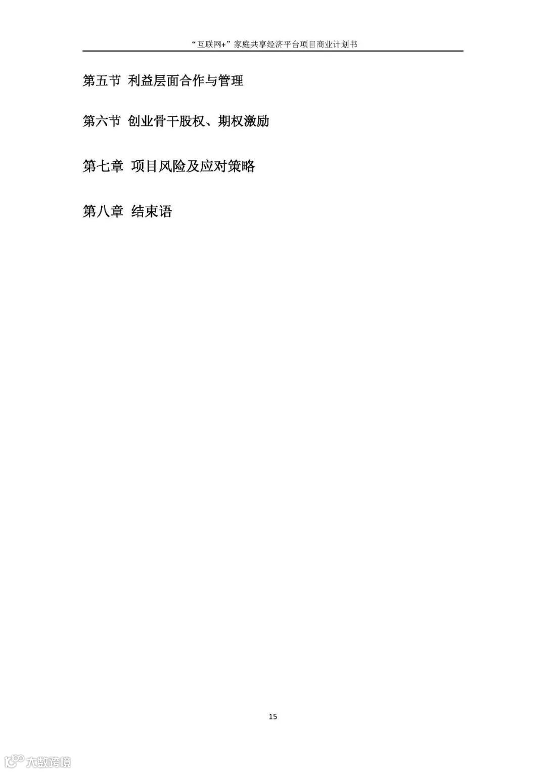 “互联网+”家庭共享经济平台项目商业计划书 尚普并购咨询