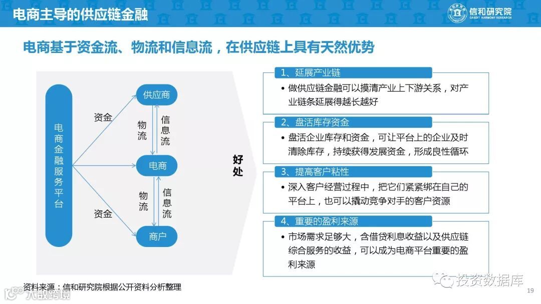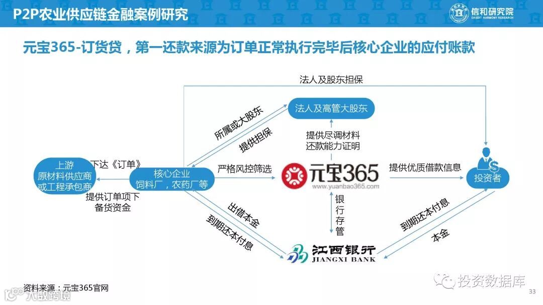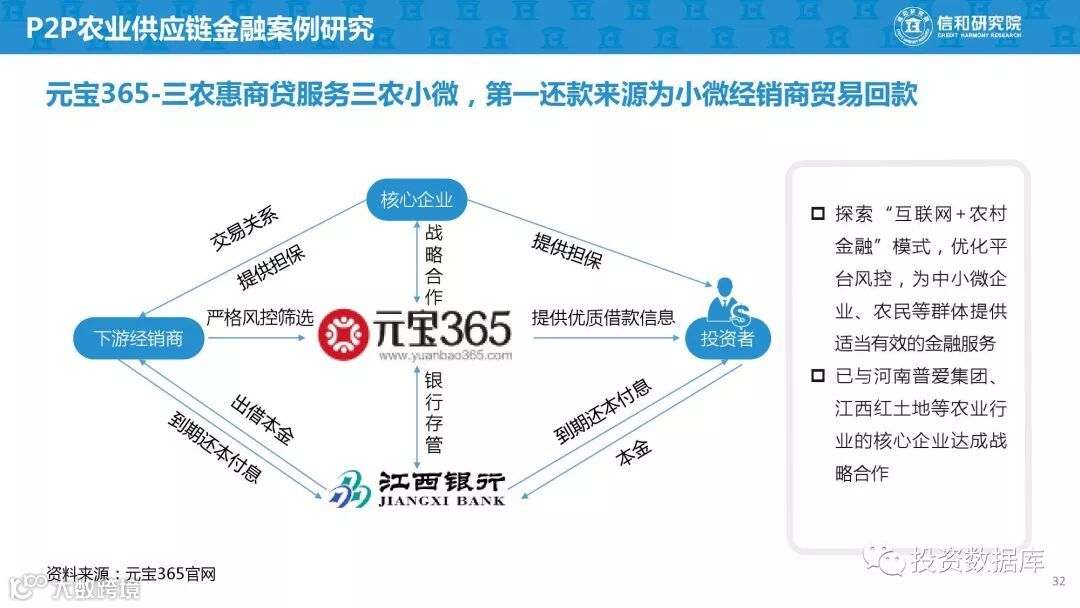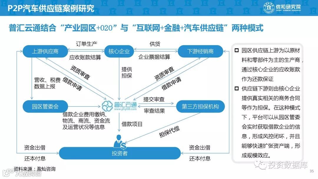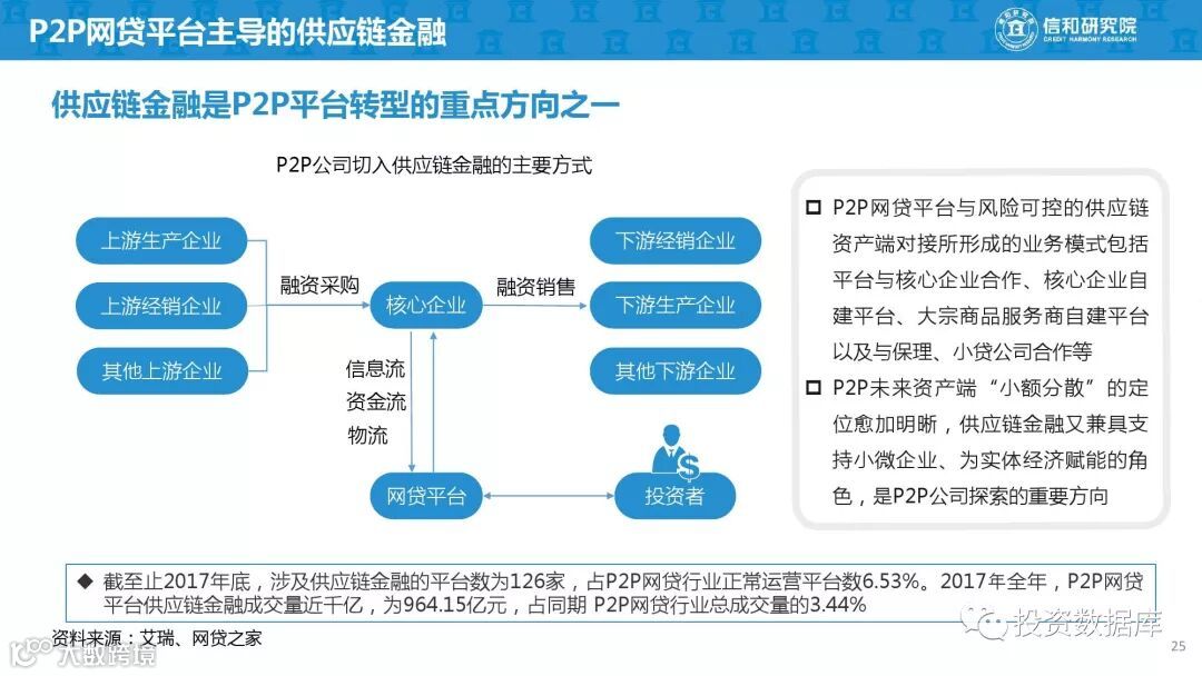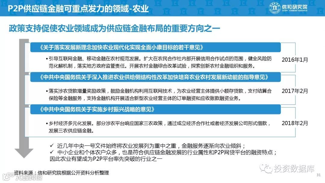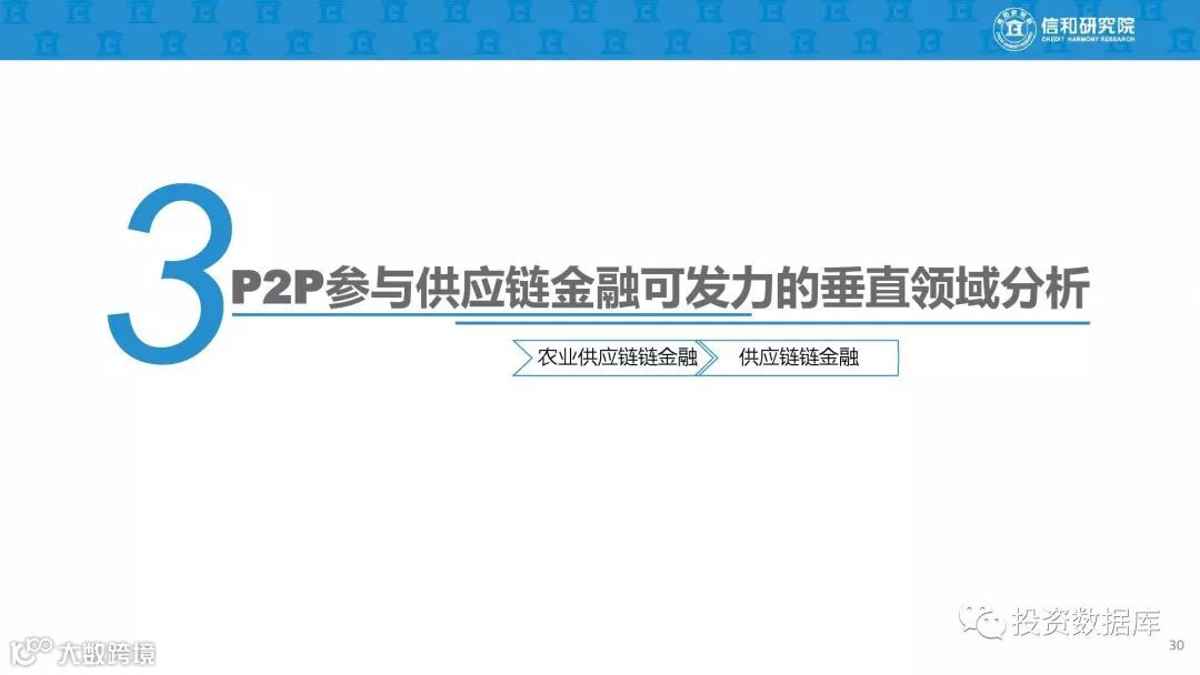 平台凭借自身的经验和资源的积累掌握了一定供应链交易的信息流、物流、资金流等核心数据,具备自身竞争优势,而商业银行等金融机构和P2P平台则在资金端有自身优势。特别是P2P网贷平台,在处理信息能力以及审批效率、创新速度都远超商业银行等传统领域,且P2P的融资门槛低且资金来源风险偏好多元化,可以满足产业链内中小企业的个性化需求。从目前的发展方向来看,农业、汽车等垂直领域可能成为P2P供应链金融优先涉足的行业。