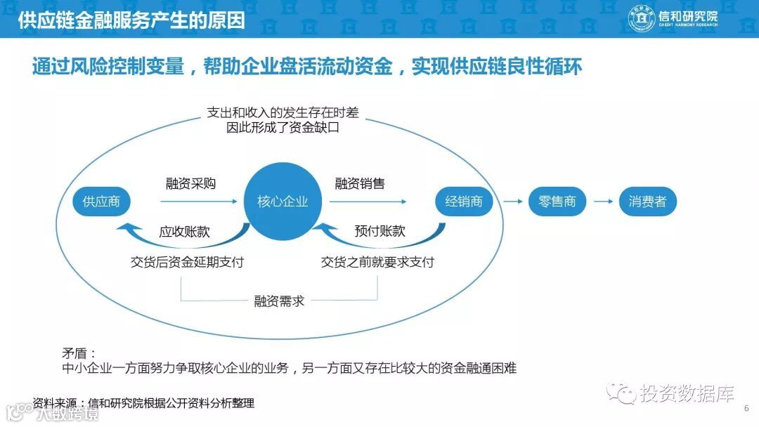 在完整的供应链条中,下游企业交货前后,由于支出和收入的发生存在时差,因此形成了资金缺口,借助供应链上核心企业的信用,供应链金融服务商通过风险控制变量,在资金出现时差时期提供融资服务。近两年,随着网络化、数据化、智能化的发展,供应链金融已经形成了资金流、物流、信息流、商流四合一的金融生态圈,伴随着物联网、大数据、人工智能和区块链等新技术的成熟,行业风险管理能力也将持续提升。