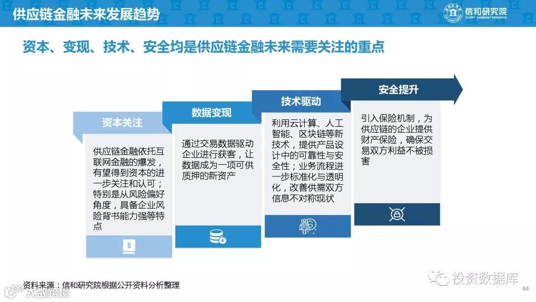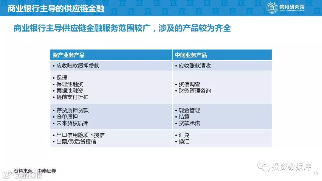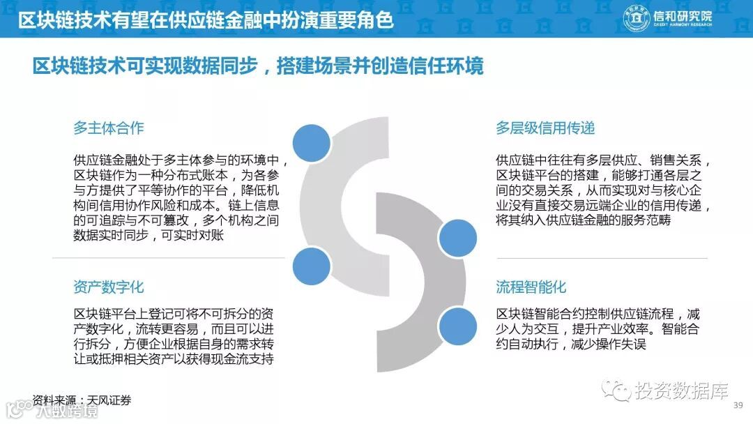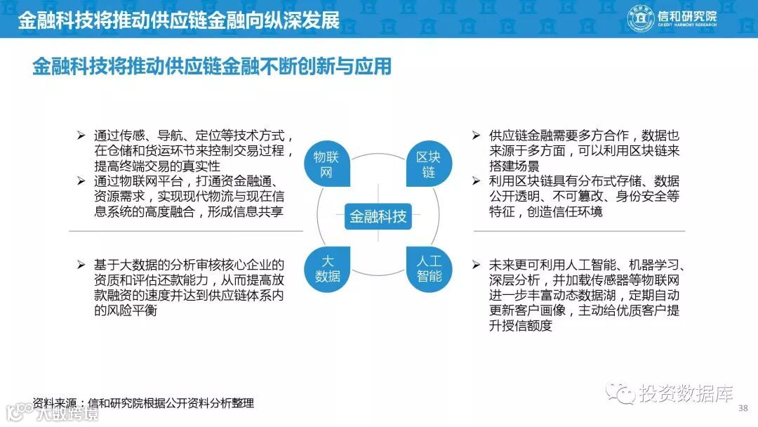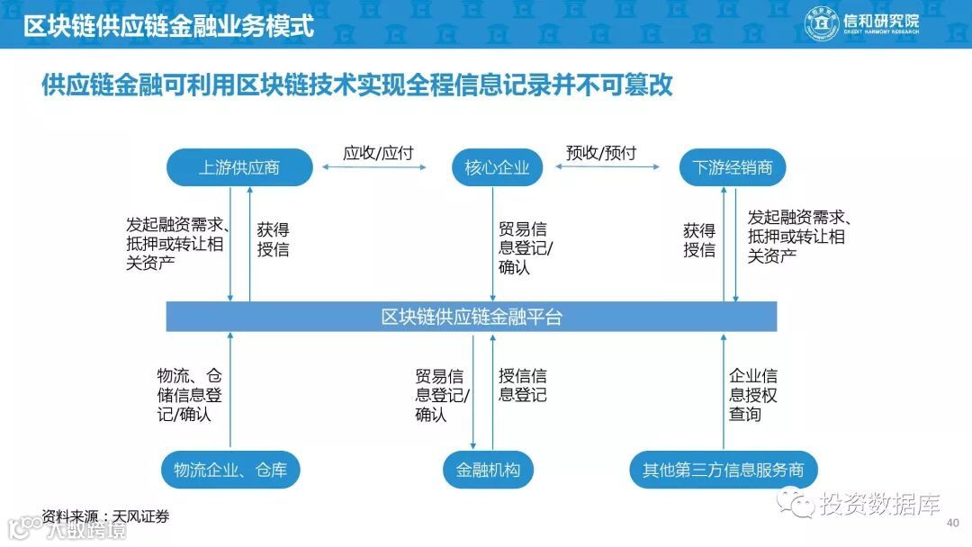 金融科技将推动供应链金融向纵深发展,特别是区块链技术有望在供应链金融中扮演重要的角色。目前,供应链金融市场开发比例不足15%,未来还有较大发展空间,P2P网贷平台的融资门槛相对较低且资金来源、风险偏好多元化,可以满足产业链内中小企业的个性化需求,未来的发展值得期待。