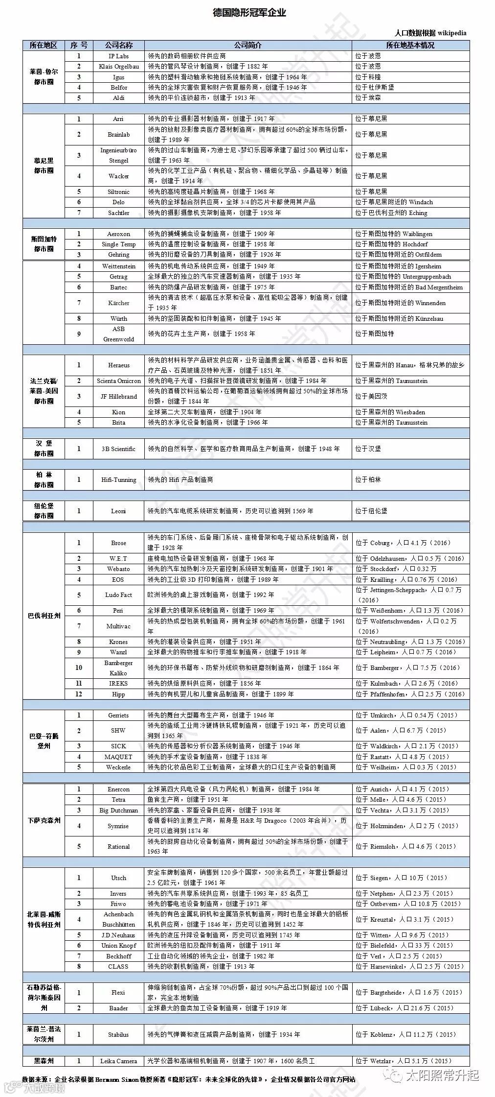 德国的“隐形冠军”企业一栏,点击可查看大图。(来源公众号“太阳照常升起”,作者“慕峰”)