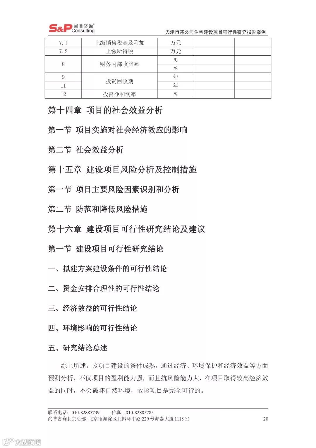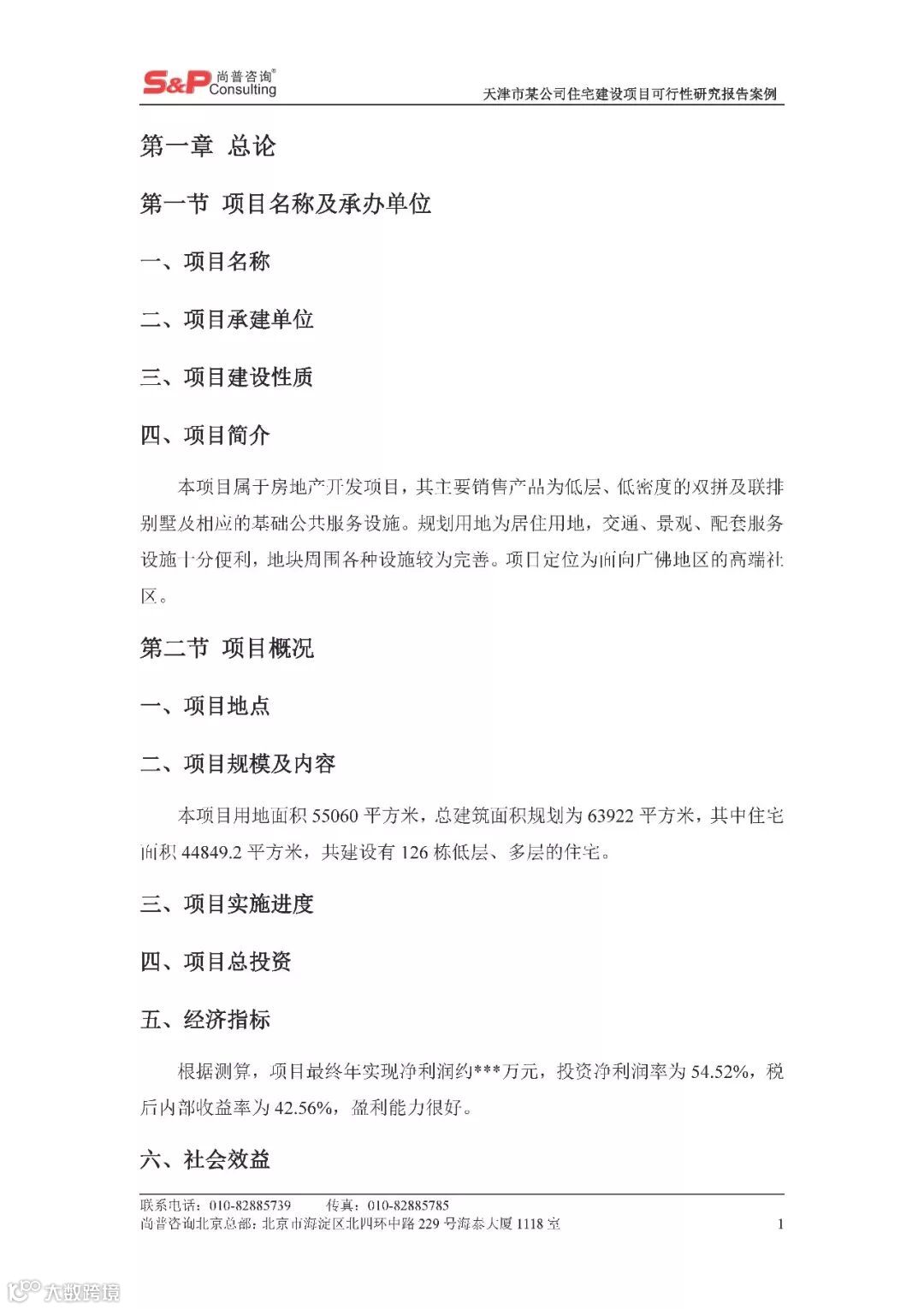天津市某公司住宅建设项目可行性研究报告案例 尚普并购咨询