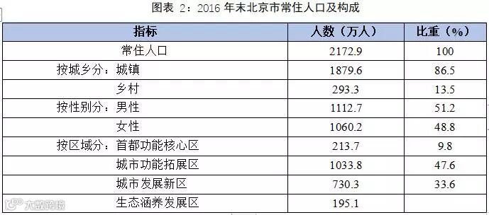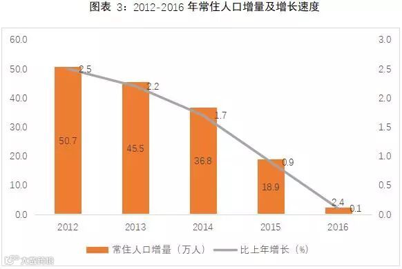 从人口增长情况看,由于近几年北京市人口控制措施趋严,导致常驻人口增量开始放缓。2016年全年,常驻人口增量仅为2.4万人,较上年增长0.1%。