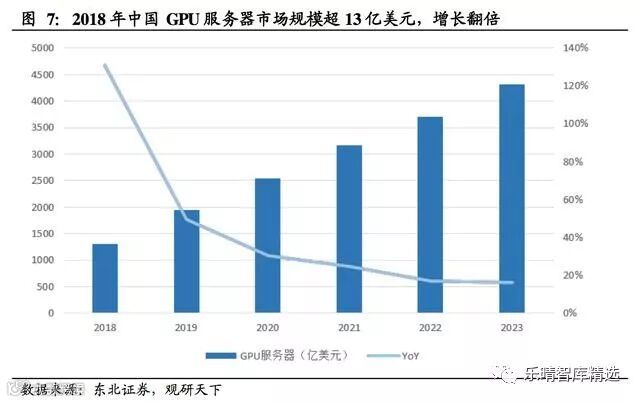 据IDC数据,2018年仅中国市场GPU服务器市场规模达13.05亿美元,同比增长131.2%。预测,到2023年中国GPU服务器市场规模将达到43.20亿美元。