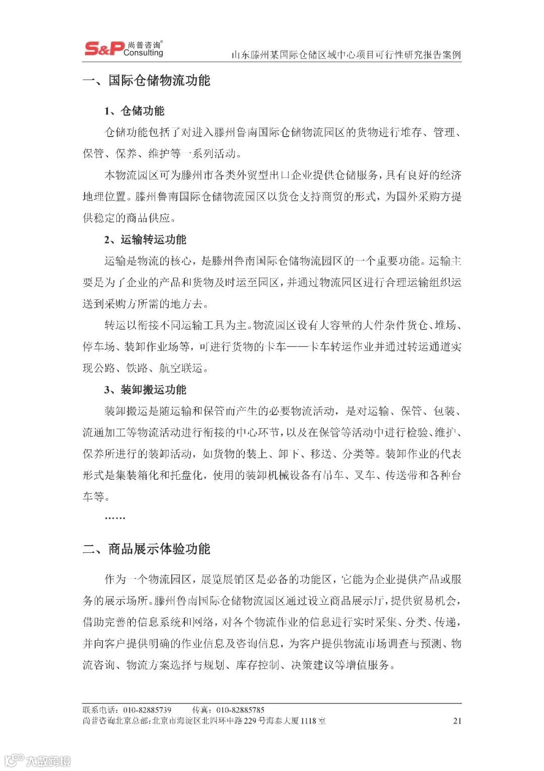 山东滕州某国际仓储区域中心项目可行性研究报告案例 尚普并购咨询