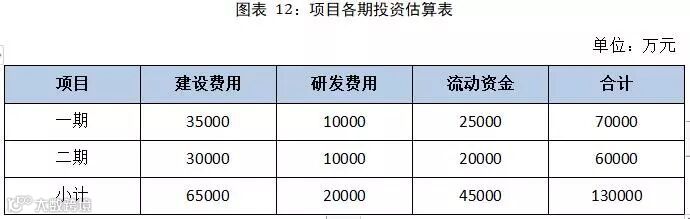 项目总投资额13亿元,其中项目一期投资7亿元,二期投资6亿元。