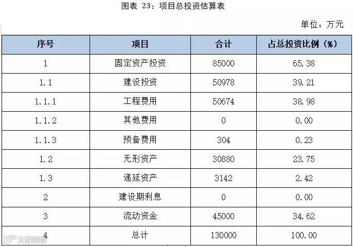 本项目需要新建厂房,以满足项目需要。固定资产估算额为85000万元,其中,建筑工程费用22616万元,设备购置费为27785万元,安装工程费用274万元,预备费304万元,其他费用34021万元。