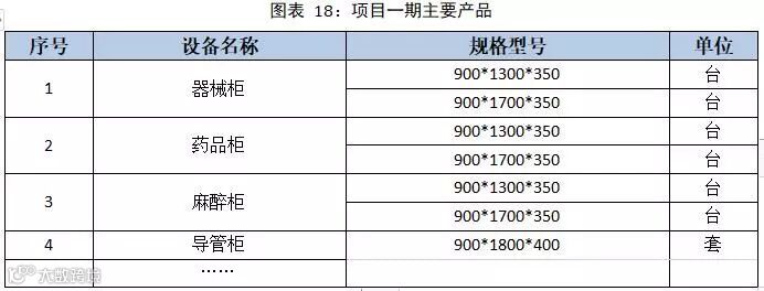 项目在净化设备为主的医疗器械领域拥有丰富的技术储备和产品线,项目一期主要产品如下: