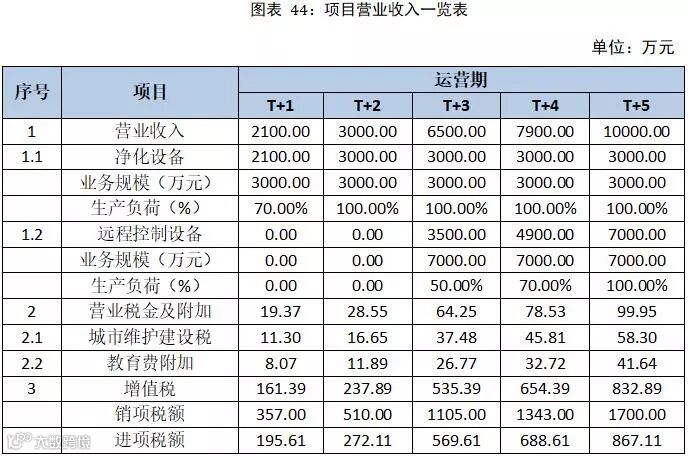 本项目的营业收入主要为医疗净化设备和远程医疗设备收入。本项目建成后,将形成良性的资金链循环。项目一期达产年收入为3000.00万元,二期建成后,项目整体达产年收入为10000.00万元。
