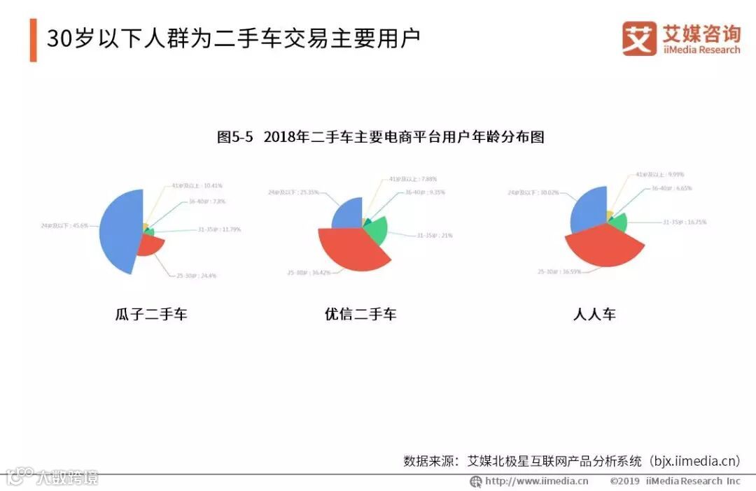三大二手车交易电商平台的用户中超六成为30岁以下的年轻用户,比例最高的为瓜子二手车网,占比71.0%。