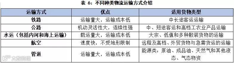 物流的运输方式主要分为铁路、公路、内河、海上、空中和管道六种方式: