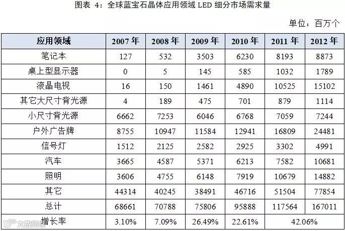 LED是未来的新一代光源,被公认为是21世纪最具发展前景的高技术领域,世界各个主要国家和地区纷纷制订了LED技术与产业发展计划。照明级LED在全球各国节能环保政策倡导下,将成为未来LED的主战场。蓝宝石晶体可以大规模应用于LED衬底行业,包括LED照明、LED电视、LED显示屏、LED-NB/LED手机。