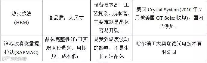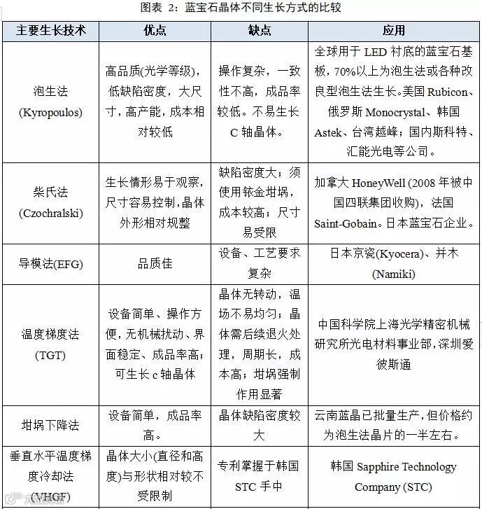 二、蓝宝石晶体各种生长方式对比