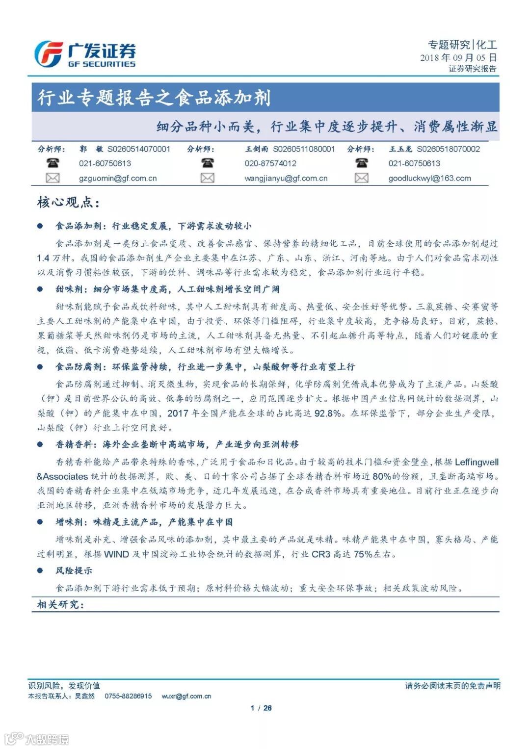 2018年化工行业专题报告之食品添加剂