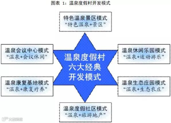 我国在多年的开发实践中,以温泉资源为主题的度假村开发模式通过不断的创新,取得了令人瞩目的成功。其中主要有以下六大经典开发模式: