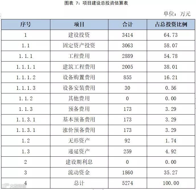 本项目总投资5274万元,其中,建设投资金额为3414万元,流动资金为1860万元。