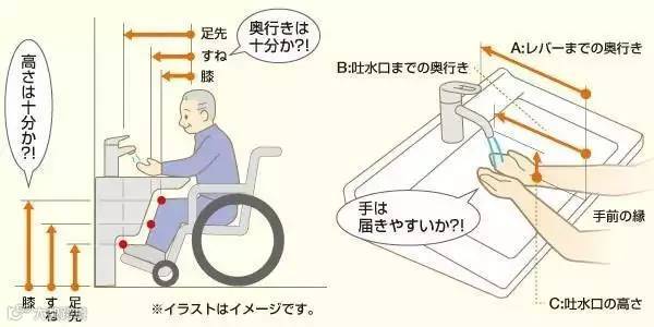 若为高龄人士(腿脚不便需轮椅老人),操作台根据使用者腿部情况高度+18cm=约73~85厘米左右。