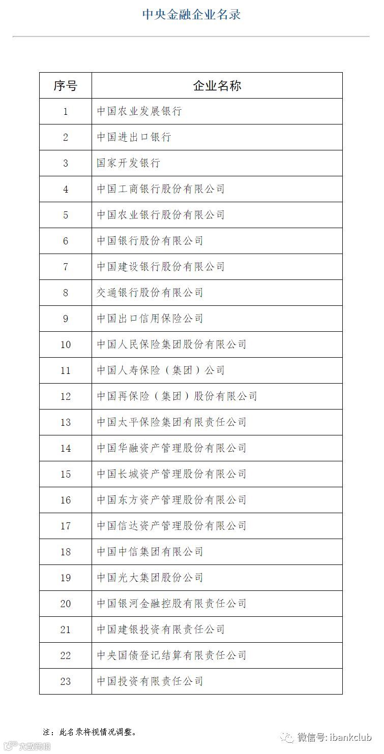 如国有五大银行(中国工商银行、中国农业银行、中国银行、中国建设银行、交通银行)及中国进出口银行、中国农业发展银行、国家开发银行。