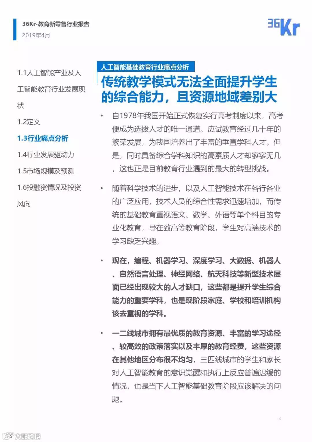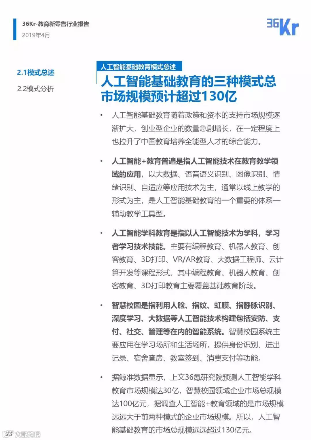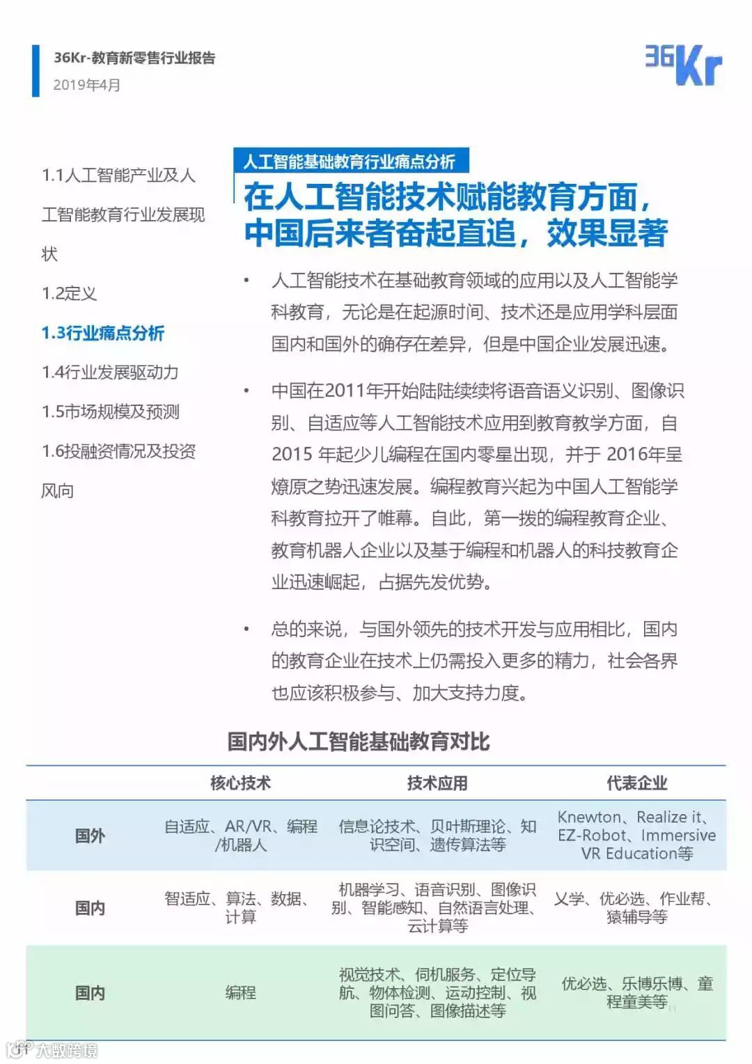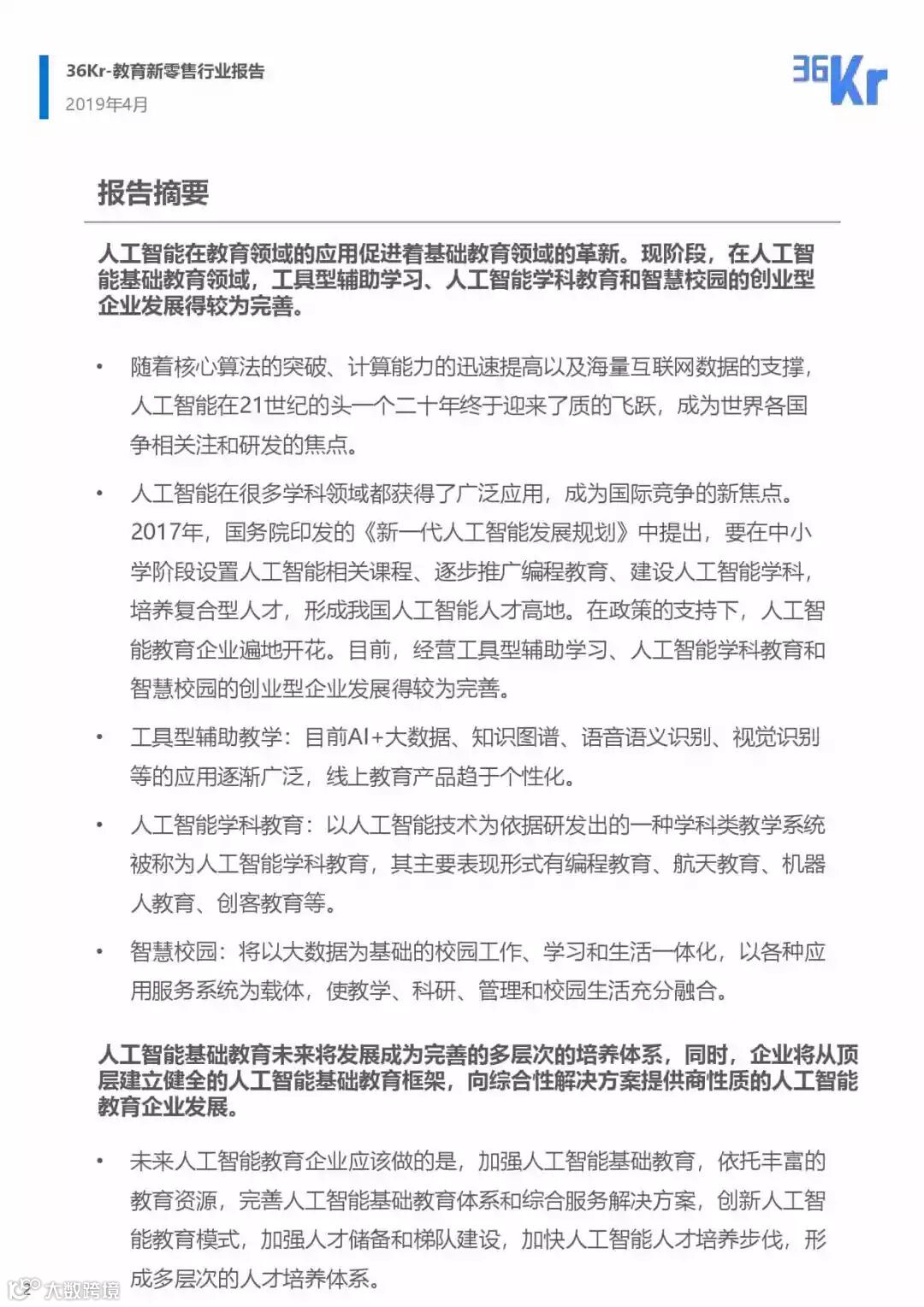 2019年人工智能基础教育行业研究报告