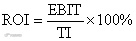 总投资收益率表示总投资的盈利水平,系指项目达到设计能力后正常年份的年息税前利润或运营期内年平均息税前利润(EBIT)与项目总投资(TI)的比率,总投资收益率应按下式计算: