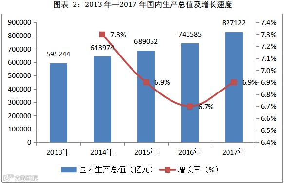初步核算,2017年国内生产总值827122亿元,比上年增长6.9%。其中,第一产业增加值65468亿元,增长3.9%;第二产业增加值334623亿元,增长6.1%;第三产业增加值427032亿元,增长8.0%。第一产业增加值占国内生产总值的比重为7.9%,第二产业增加值比重为40.5%,第三产业增加值比重为51.6%。全年最终消费支出对国内生产总值增长的贡献率为58.8%,资本形成总额贡献率为32.1%,货物和服务净出口贡献率为9.1%。全年人均国内生产总值59660元,比上年增长6.3%。全年国民总收入825016亿元,比上年增长7.0%。