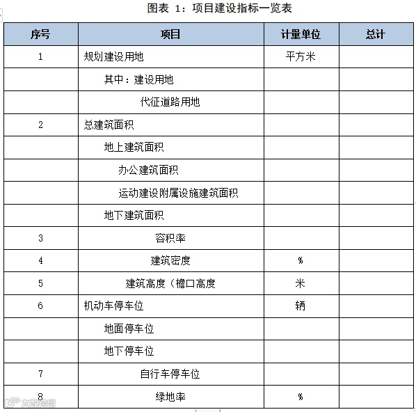 本项目规划总用地****平方米,建设用地面积****平方米,其中地上建设规模****平方米,建筑层数**层,建设控制高度**米,地下建筑面积为****平方米。本项目为**栋建筑,容积率为**,建筑密度**%,绿化率**%,机动车停车位***辆。