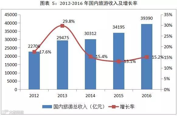 根据国内旅游抽样调查结果,2016年全年国内旅游总收入达到39390亿元,增长15.2%。从三大旅游市场的具体情况来看,国内旅游业仍然保持超高热度,出境游也在平稳增长,入境游开始回暖。旅游业发展总体向好,其在国民经济中发挥的作用也越来越大。