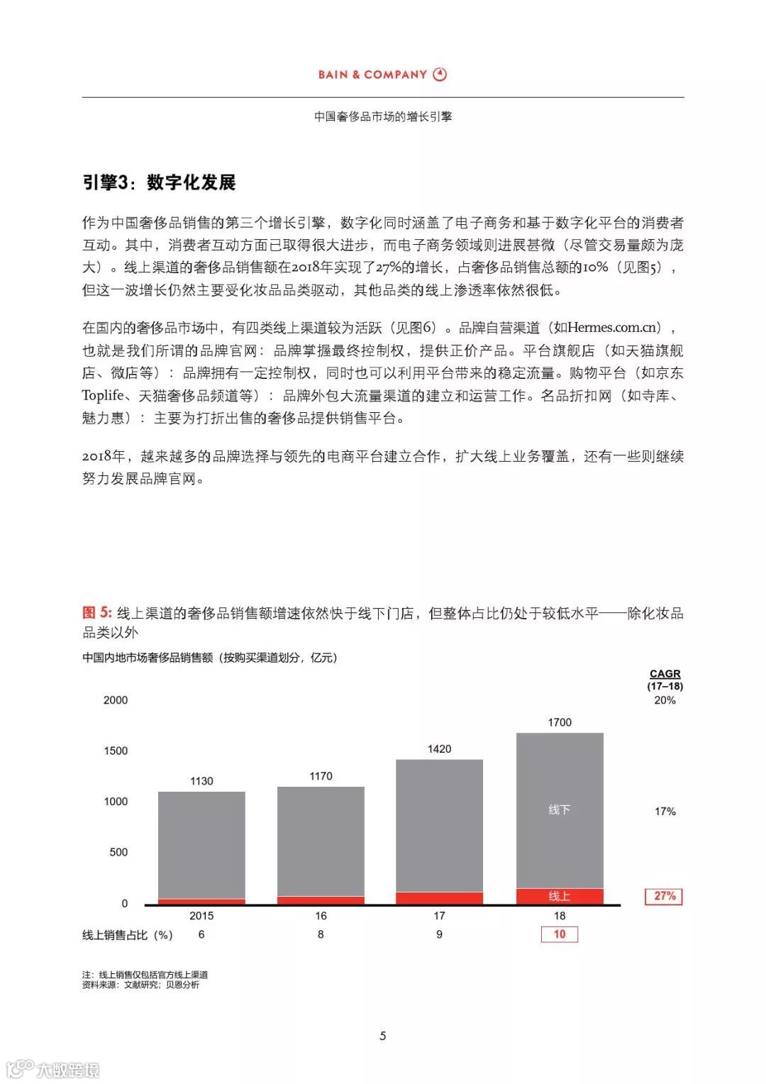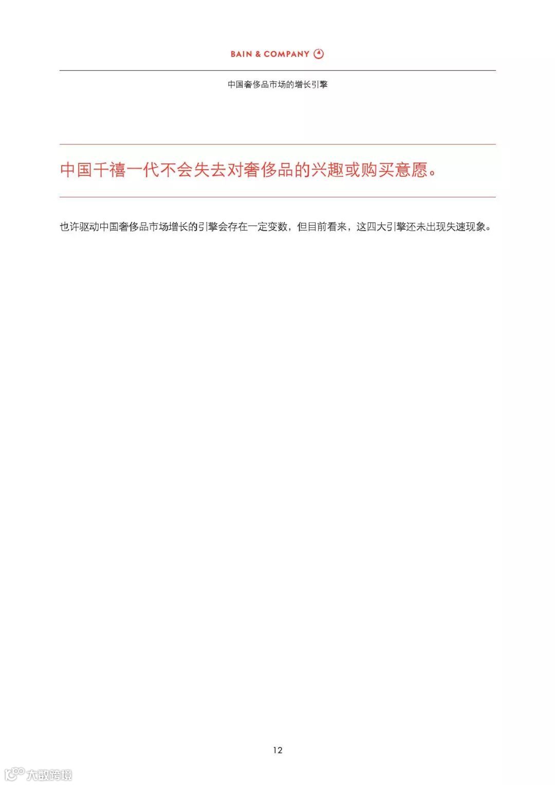 “中国奢侈品市场犹如一台强大的机器,四台增长引擎相互配合、马力全开,为整个奢侈品行业的蓬勃发展提供了源源不断的动力。”贝恩公司全球合伙人、报告作者布鲁诺(Bruno Lannes)表示。