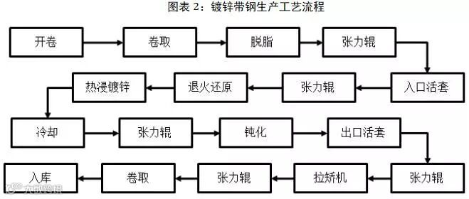 镀锌带钢拟采用国际上先进的美钢联法生产工艺。其工艺流程如下:
