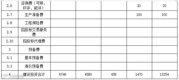 项目建设投资估算13254万元,其中建筑工程费6746万元,设备购置费4580万元,安装工程费458万元,工程建设其他费用为841万元。项目建设投资估算如下所示: