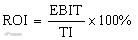 总投资收益率表示总投资的盈利水平,系指项目达到设计能力后正常年份的年息税前利润或运营期内年平均息税前利润(EBIT)与项目总投资(TI)的比率,总投资收益率应按下式计算: