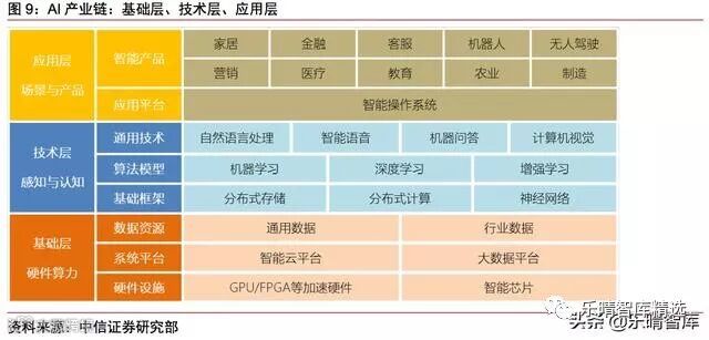 AI产业链分为:基础层、技术层、应用层。