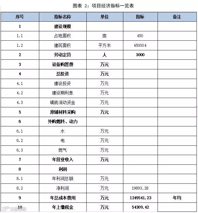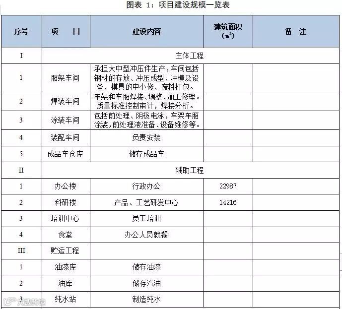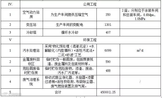项目总占地面积450亩,总建筑面积为450002.25平方米,主要分为主体工程、辅助工程、公用工程及环保工程几大部分,具体如下表所示: