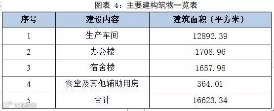 项目总建筑面积16623.34㎡(租赁),其中办公楼1708.96㎡,宿舍楼1657.98㎡,食堂及其他辅助用房364.01㎡,生产车间12892.39㎡。