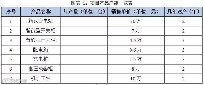 项目主要产品包括箱式变电站、智能型开关柜、普通型开关柜、配电箱、充电桩、高压成套柜和机加工底床共7种。