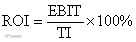 总投资收益率表示总投资的盈利水平,系指项目达到设计能力后正常年份的年息税前利润或运营期内年平均息税前利润(EBIT)与项目总投资(TI)的比率,总投资收益率应按下式计算:
