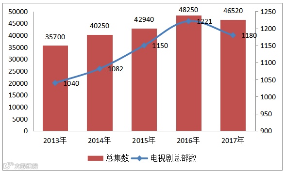 数据显示:截止到12月底,2017年1-12月全国电视剧备案公示总量为1180部、46520集。与2016年相比,总部数同比下降3.36%,总集数下降3.59%,这也是电视剧备案数据迎来了近五年来的首次“逆增长”。单部集数持续增长、但增长幅度有所减缓2012年以来,无论备案总数发生何种改变,单部集数一直保持平稳的增加趋势。2017年,在立项总部数、总集数均有所下降的情况下,平均单部集数依然上升至39.8集。网络剧数量下降明显,2017年新增网络剧295部,相比2016年349部的数量同比减少15.5%;相较2015年379部的数量减少22.2%,下降趋势明显。