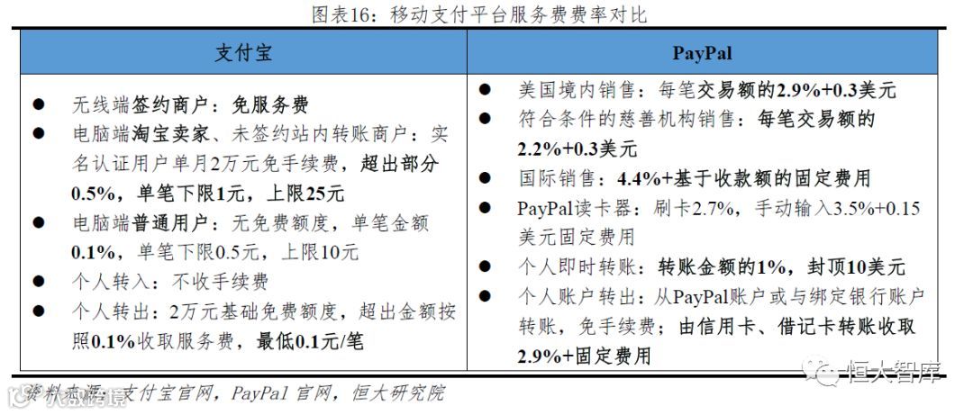 3.3.2 移动支付手续费低:移动支付平台向商户收取的手续费费率远低于欧美