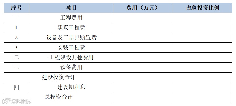 五、 总投资构成
