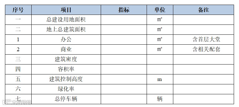 本项目将同步实施室外工程,包括室外综合管线、道路、绿化、照明等建设。项目经济技术指标表及总平面图如下所示。