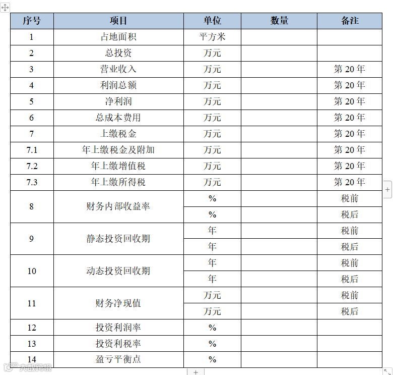 项目所得税后财务净现值为**万元,财务内部收益率为**%,静态投资回收期为**年,动态投资回收期为**年,投资净利润率为**%。从财务指标可以看出,项目各项财务指标处于较理想状态,项目盈利能力良好。