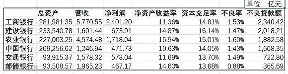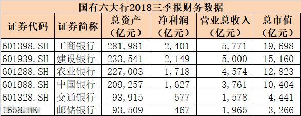 据2018三季报,邮储银行在国有六大行的财务指标排名如下,截至2018年9月末,邮储银行资产规模已达9.35万亿元,已经接近第五大国有银行交通银行同期的9.39万亿元。
