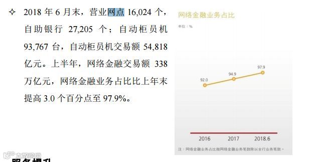 值得一提的是,邮储银行是中国拥有网点最多的银行,近4万个。其中近3.2万个网点委托邮政集团代理,这些网点大多分布在县及县以下的乡镇地区,其中8000多个网点是银行自营网点,主要分布在县城及城市地区。