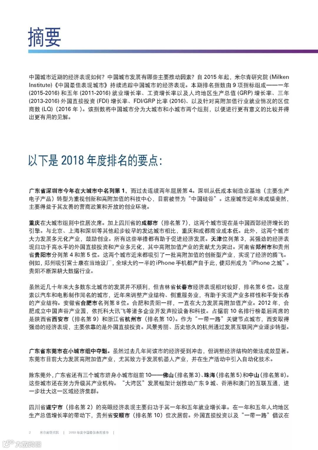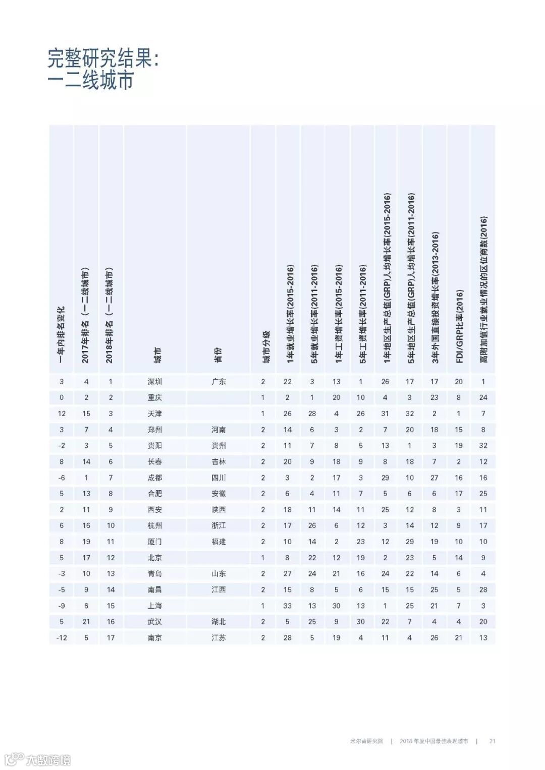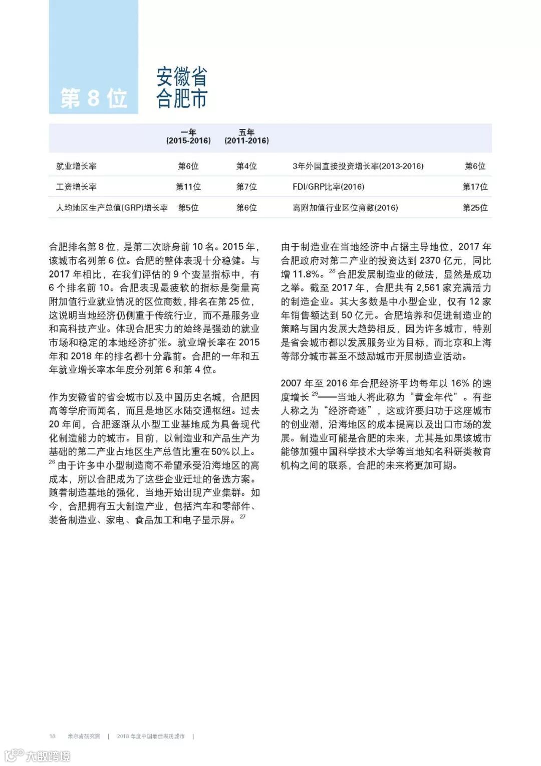 2018年年度中国最佳表现城市报告