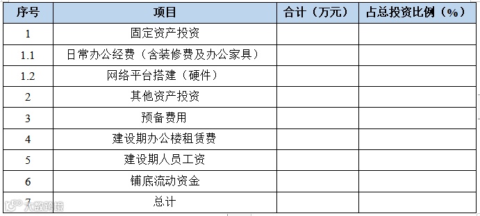本项目投资估算范围包括:办公楼租赁费、系统开发费、设备购置费、软件购置费、预备费和流动资金等。
